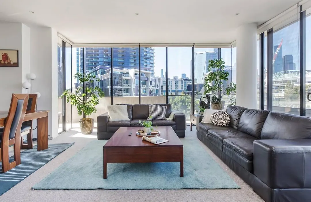 The 2-room 'The View At Docklands' Resort Style City Living apartment is nestled in Melbourne CBD with a diverse range of restaurants, designer fashion boutiques, cafe-filled laneways, bars, galleries and spacious parks, about a 10-minute walk from ArtVo. Onsite luxuries include an outdoor swimming pool ensuring guests relaxation during their stay.